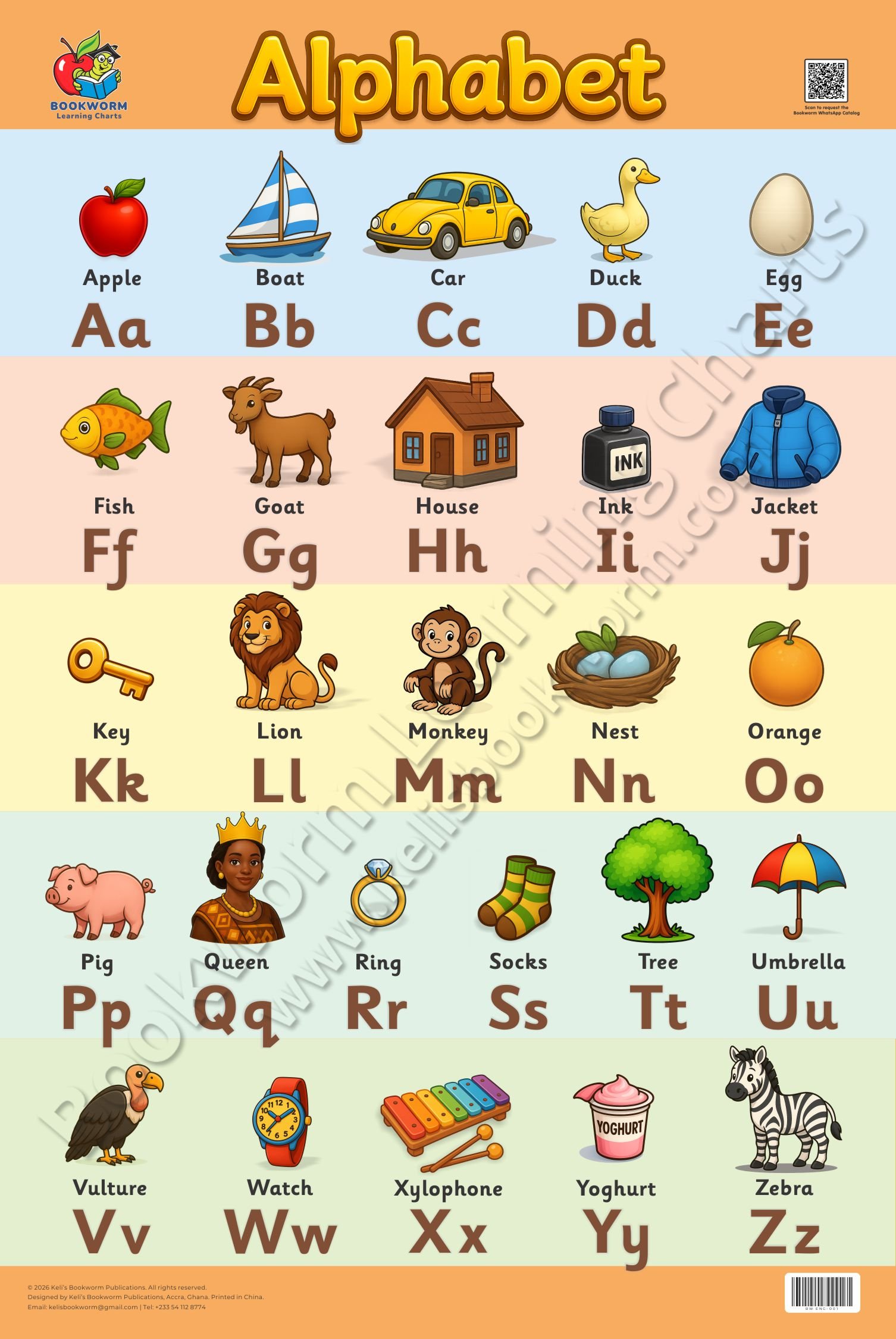 This alphabet chart helps children learn letters A to Z through clear, engaging visuals and familiar objects. It is designed for early learners to support letter recognition, vocabulary development, and classroom interaction.